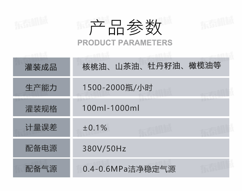 核桃油灌裝旋蓋生產(chǎn)線(xiàn)參數(shù)