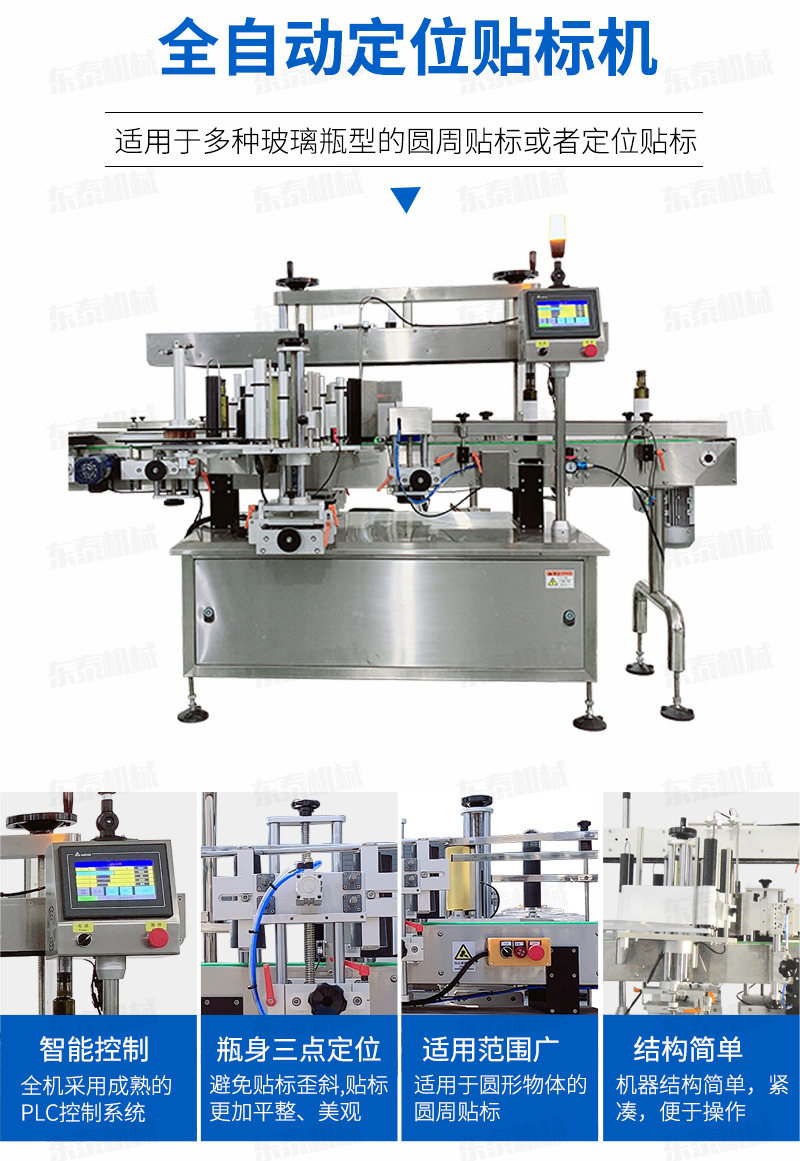 本機(jī)適用于食品、醫(yī)藥、化妝品及其它輕工行業(yè)中的扁瓶貼標(biāo)、方瓶貼標(biāo)、圓瓶貼標(biāo)之理想設(shè)備。功能操作簡(jiǎn)單,結(jié)構(gòu)緊湊。采用光電檢測(cè),PLC控制,觸摸式軟件操作,輸送帶、扶正帶、頂帶、卷瓶帶均為無(wú)級(jí)變頻調(diào)速,具有貼標(biāo)準(zhǔn)確、精度高等優(yōu)點(diǎn);同時(shí)具有無(wú)物不貼標(biāo),無(wú)標(biāo)自動(dòng)校正、自動(dòng)檢測(cè)等功能。本機(jī)既可單機(jī)使用,也可與其它包裝機(jī)自動(dòng)連線(xiàn)使用。
