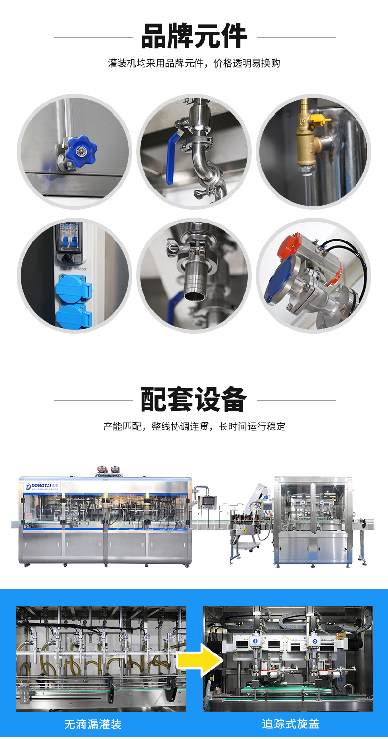 機(jī)器應(yīng)用范圍:1-10升通用型號(hào),機(jī)器采用流量計(jì)計(jì)量,觸摸屏控制,參數(shù)一鍵調(diào)整,方便快捷?梢怨嘌b各種油脂,油料。灌裝頭采用專用的油脂防滴漏灌裝頭,不滴漏。機(jī)器設(shè)定有快慢速技術(shù),可以先快后慢,防止物料噴濺。保持生產(chǎn)車間干凈潔凈。
