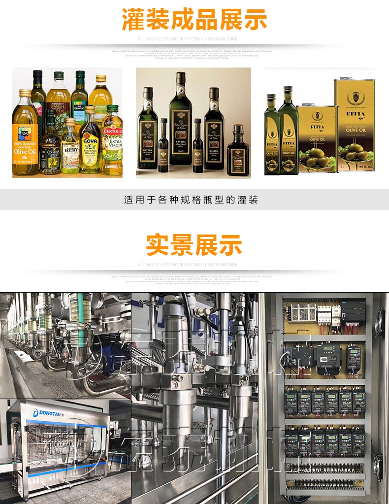 橄欖油采用PLC微電腦可編程控制,集光、機(jī)、電、傳感、氣動執(zhí)行于一體。橄欖油灌裝流水線中的注射缸活塞行程采用伺服電機(jī)驅(qū)動,行程定位精卻,并設(shè)定了快慢速灌裝。當(dāng)灌裝量接近瓶口時(shí),速度壓力減小,以防物料因沖力大而飛濺溢出。該橄欖油自動灌裝機(jī)自動化程度高,調(diào)節(jié)方便,當(dāng)改變規(guī)格或修正計(jì)量時(shí)只需在顯示屏上調(diào)整即可滿足所需精卻計(jì)量。橄欖油自動灌裝機(jī),橄欖油灌裝流水線可適用于植物油、蜂蜜、果醬、糖漿、制劑、懸浮劑、機(jī)油和日化行業(yè)各種粘稠物料的灌裝。