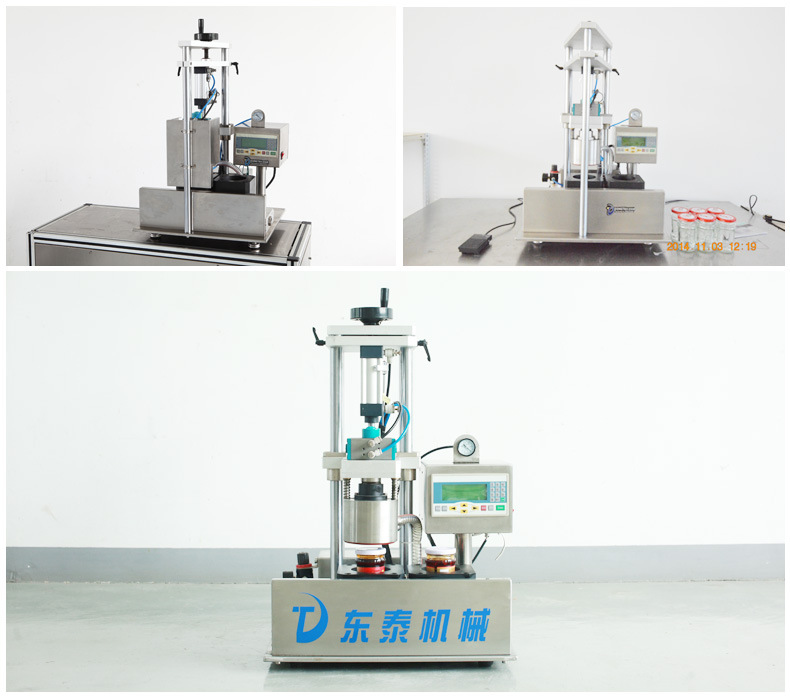 用氣缸移動(dòng)壓蓋頭上下,當(dāng)壓蓋頭下降到壓蓋時(shí),達(dá)到之前設(shè)定的真空度,壓蓋頭移動(dòng)到下一個(gè)工序。旋蓋扭矩可以通過控制面板上的旋蓋壓力按鈕來調(diào)節(jié)(在控制面板上可以看到)。