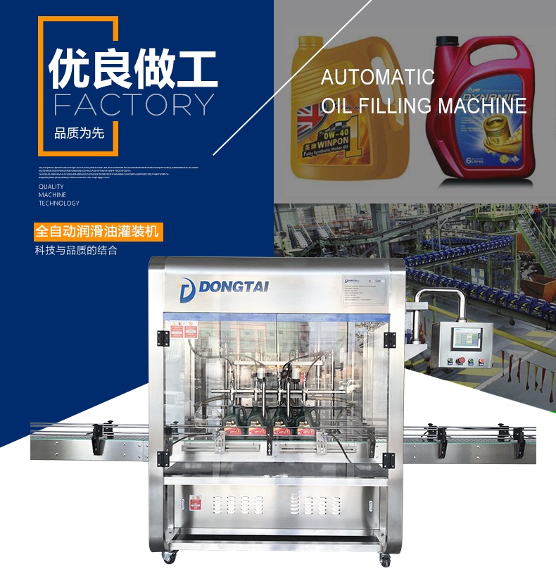 該潤滑油灌裝機(jī)集機(jī)械、電子、氣動(dòng)為一體。該生產(chǎn)線由理瓶機(jī)、直線式灌裝機(jī)、旋蓋機(jī)、貼標(biāo)機(jī)、噴碼機(jī)等組成。具有自動(dòng)化程度高、成品率高、適用性廣、穩(wěn)定性好而受到廣大用戶青睞。該生產(chǎn)線能自動(dòng)完成理瓶、灌裝、旋蓋、貼標(biāo)、噴碼等功能。裝量精度高、使用使用壽命長、耐高溫、耐酸堿,填補(bǔ)了內(nèi)空白。適用于油類半流體等不同粘度物料的灌裝,充分體現(xiàn)了本公司在產(chǎn)品設(shè)計(jì)、制造上的優(yōu)勢。灌裝系統(tǒng)采用PLC微電腦、人機(jī)界面組合控制、操作簡單、維護(hù)方便。所有接觸物料部分的材料和裝潢材料全部采用優(yōu)質(zhì)不銹鋼制造,表面進(jìn)行了拋光處理,外形美觀、大方,不污染環(huán)境,符合GMP要求。